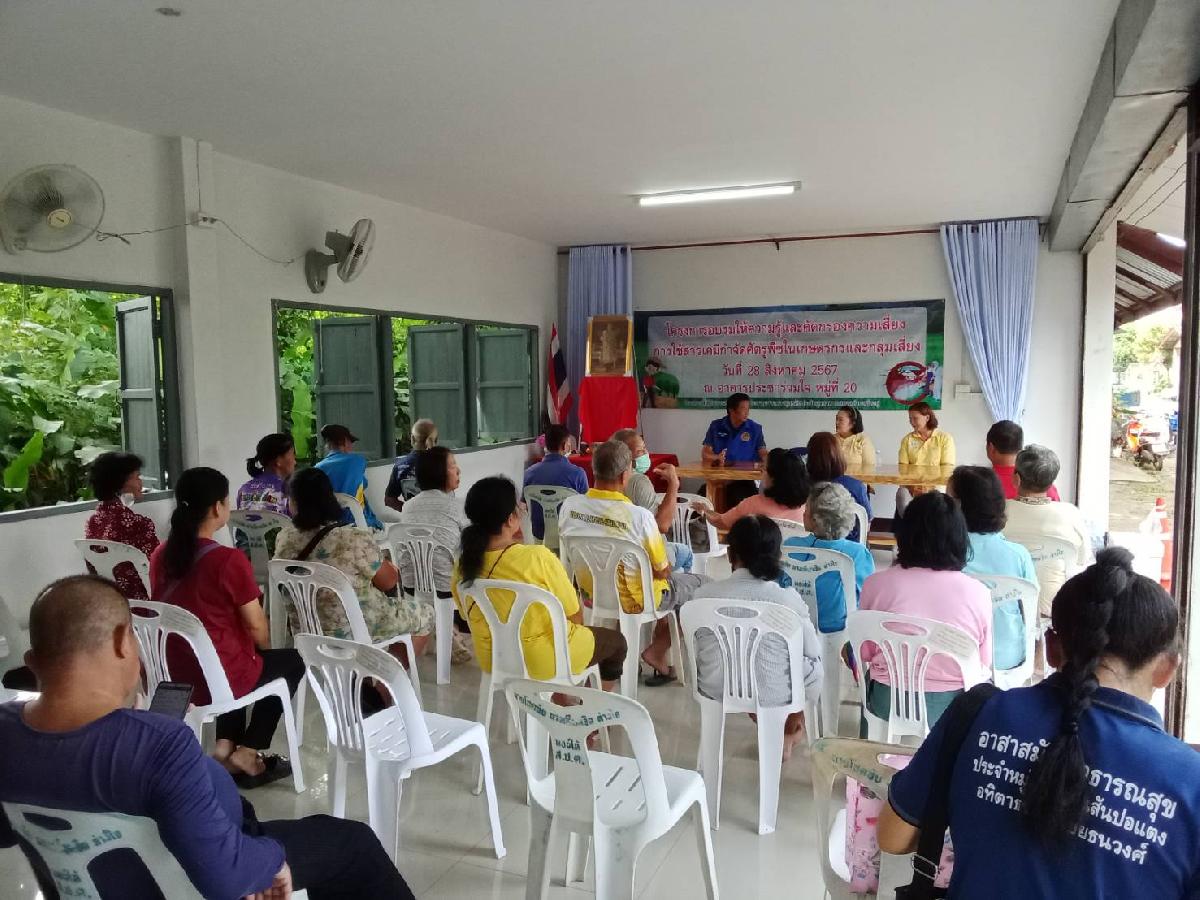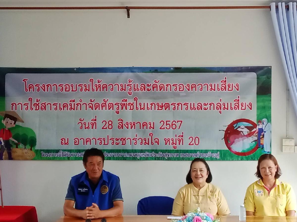 วันนี้ 28 สิงหาคม 2567 เวลา 09.00 น. นางพีระพรรณ ศิริกุล รองนายกเทศมนตรีตำบลบ้านดู่ ให้เกียรติเป็นประธานเปิดโครงการอบรมให้ความรู้และคัดกรองความเสี่ยง การใช้สารเคมีกำจัดศัตรูพืชในเกษตรกรและกลุ่มเสี่ยง