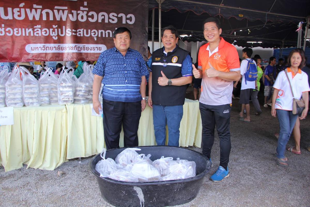 ทั้งนี้ นายกเทศมนตรีตำบลบ้านดู่ได้มอบข้าวกล่องเพื่อสนับสนุน ศูนย์พักพิงชั่วคราวช่วยเหลือผู้ประสบอุทกภัย มหาวิทยาลัยราชภัฏเชียงราย และแวะเยี่ยมเยียนให้กำลังใจผู้ประสบภัย ณ ศูนย์พักพิงชั่วคราวฯ