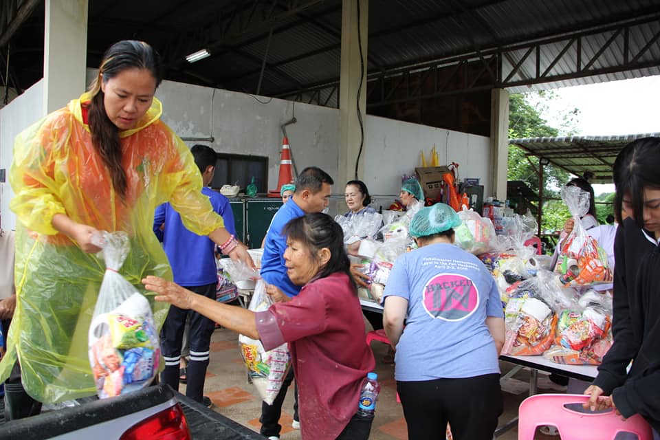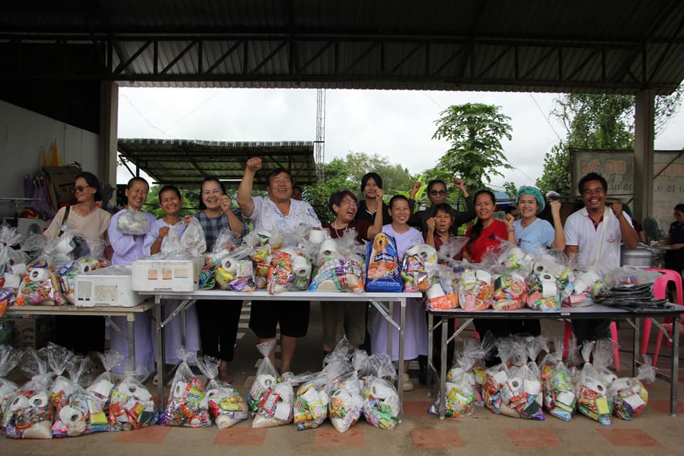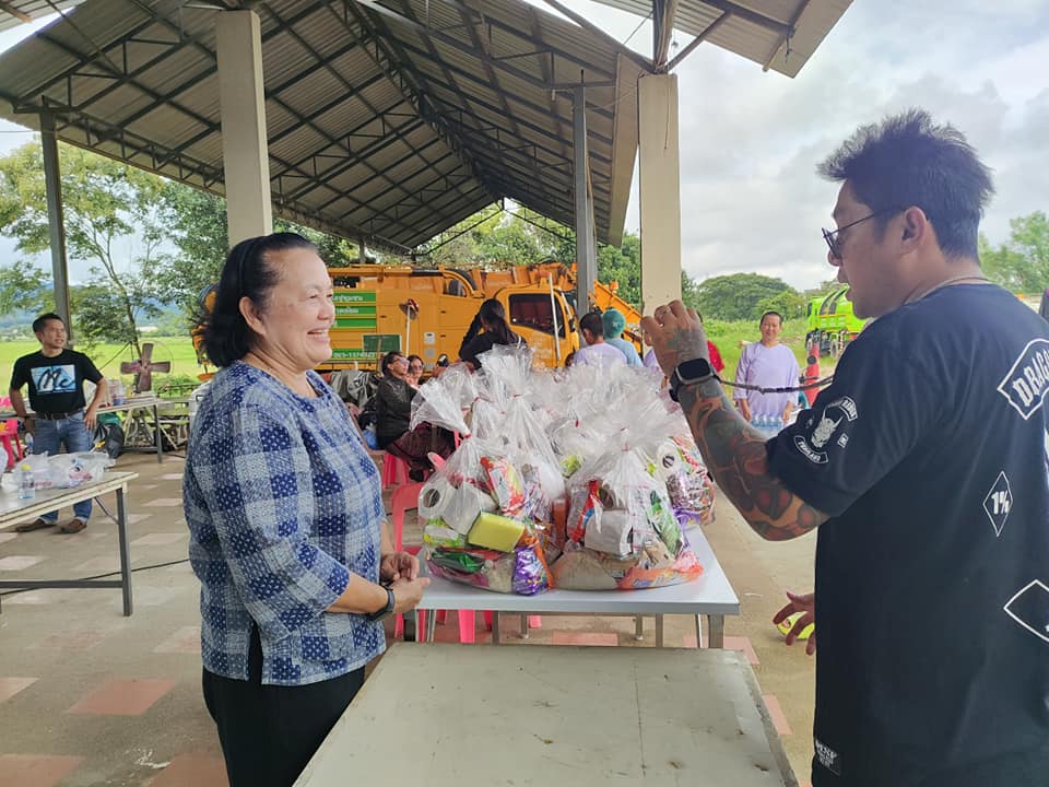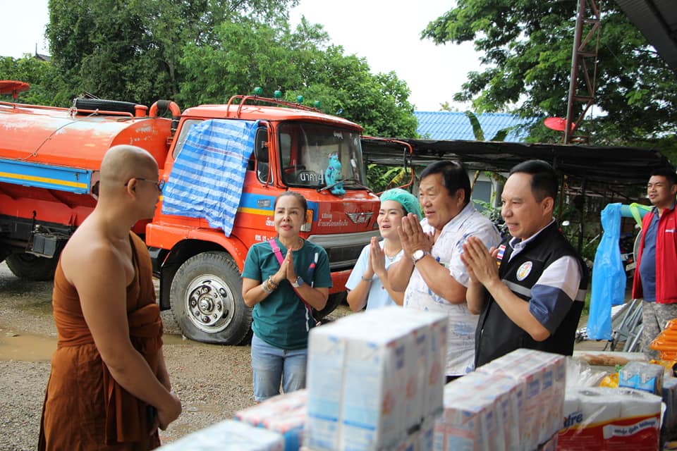 ทั้งนี้ ได้รับความเมตตาจากพระอธิการประจักษ์ วิจกฺขณโสภี เจ้าอาวาสวัดสันกองพัฒนาราม ตำบลโรงช้าง อำเภอป่าแดด จังหวัดเชียงราย พร้อมคณะศรัทธาวัดสันกองพัฒนาราม รวมทั้งคณะศรัทธาวัดสันก้างปลา ตำบลทรายมูล อำเภอสันกำแพง จังหวัดเชียงใหม่ มอบอาหารและถุงยังชีพ เพื่อแจกจ่ายช่วยเหลือผู้ประสบอุทกภัย