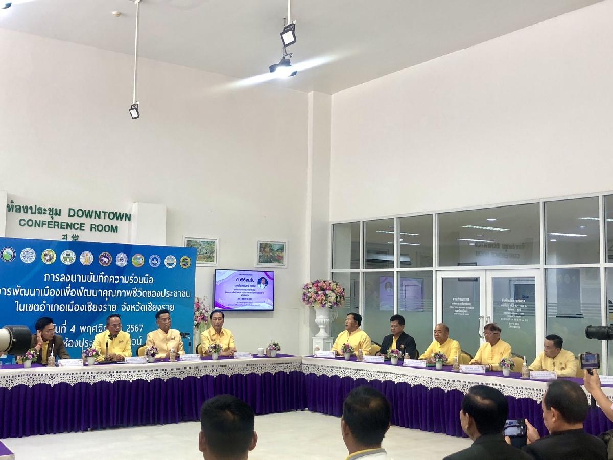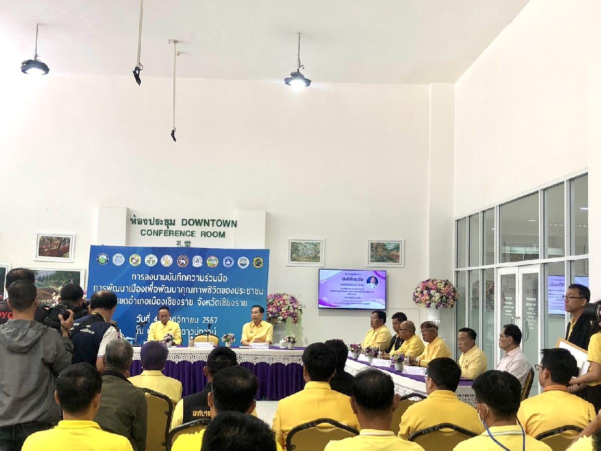 4 ต.ค. 67 เทศบาลตำบลบ้านดู่ ร่วมการลงนามบันทึกความร่วมมือ การพัฒนาเมืองเพื่อพัฒนาคุณภาพชีวิตของประชาชนในเขตอำเภอเมืองเชียงราย