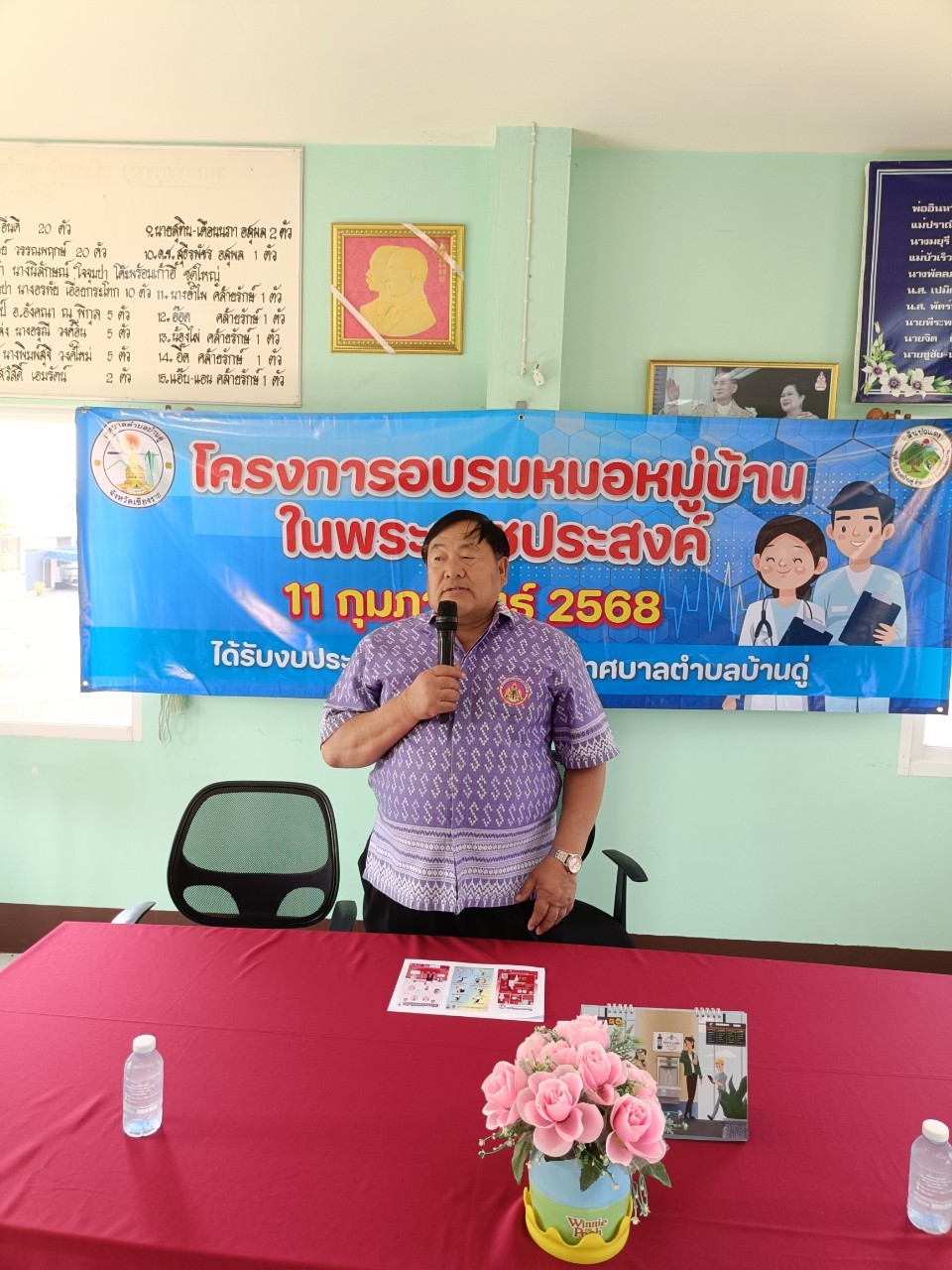 วันนี้ 11 กุมภาพันธ์ 2568 เวลา 09.00 น. นายพัฒนพงษ์ โพธิ์เกตุ นายกเทศมนตรีตำบลบ้านดู่ ให้เกียรติเป็นประธานเปิดโครงการพระราชดำริด้านสาธารณสุข โครงการอบรมหมอหมู่บ้านในพระราชประสงค์ ณ อาคารอเนกประสงค์บ้านสันปอแตง หมู่ 20 อำเภอเมืองเชียงราย จังหวัดเชียงราย ซึ่งโครงการได้รับสนับสนุนงบประมาณจากเทศบาลตำบลบ้านดู่