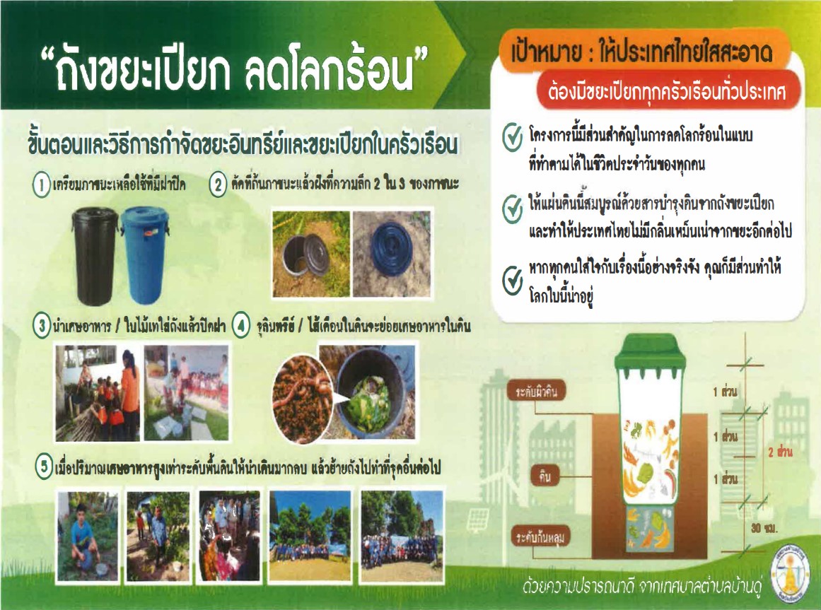 ประชาสัมพันธ์การจัดทำถังขยะเปียกลกโลกร้อน เมื่อ 12 มกราคม 2567 เวลา 14:49:27 น. เปิดอ่าน 289 ครั้ง กองสาธารณสุขฯ