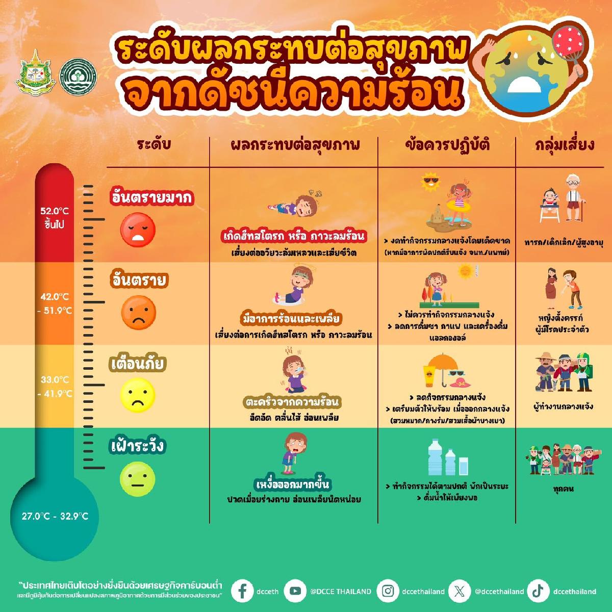 ประชาสัมพันธ์ ระดับผลกระทบต่อสุขภาพจากดัชนีความร้อน เมื่อ 05 มิถุนายน 2567 เวลา 15:05:19 น. เปิดอ่าน 190 ครั้ง กองสาธารณสุขฯ